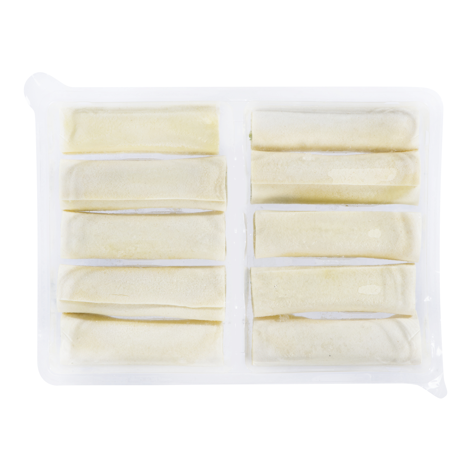 Garniture (fromage ricotta (lactosérum, lait, culture bactérienne, sel, acide citrique), champignon portobello, champignons de Paris, épinard, chapelure de blé grillée, oignon, ail, huile de canola, fromage parmesan (lait, culture bactérienne, sel, lipase, enzyme microbienne), sel, vin madère (sulfites), fines herbes, épices, oignon déshydraté, huile de tournesol, champignon en poudre), Pâte (semoule de blé dur, eau, oeuf entier liquide).